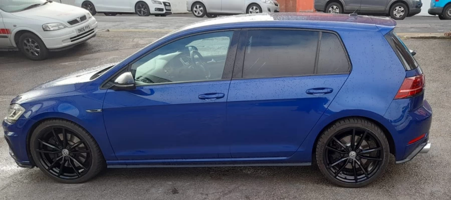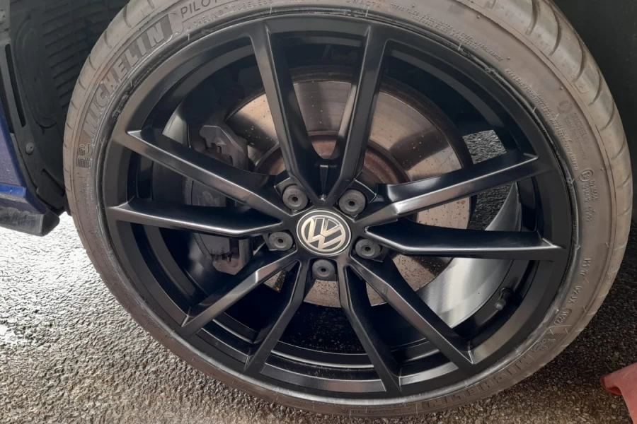 This stunning blue Golf came to us with mildly scuffed alloys, and the owner wanted a colour change for his wheels. We can powder coat or paint your alloys in any colour you like, so if you’d like a refurb and a new look maybe consider a colour change too. This car started with anthracite alloys, and we powder coated them in black. A colour change to your alloys can change the appearance of the whole car. Making it look more sporty or just stand out from the crowd. The owner was really pleased with the end result, they were just what he wanted. Take a look at the pictures below, we think they look great!
